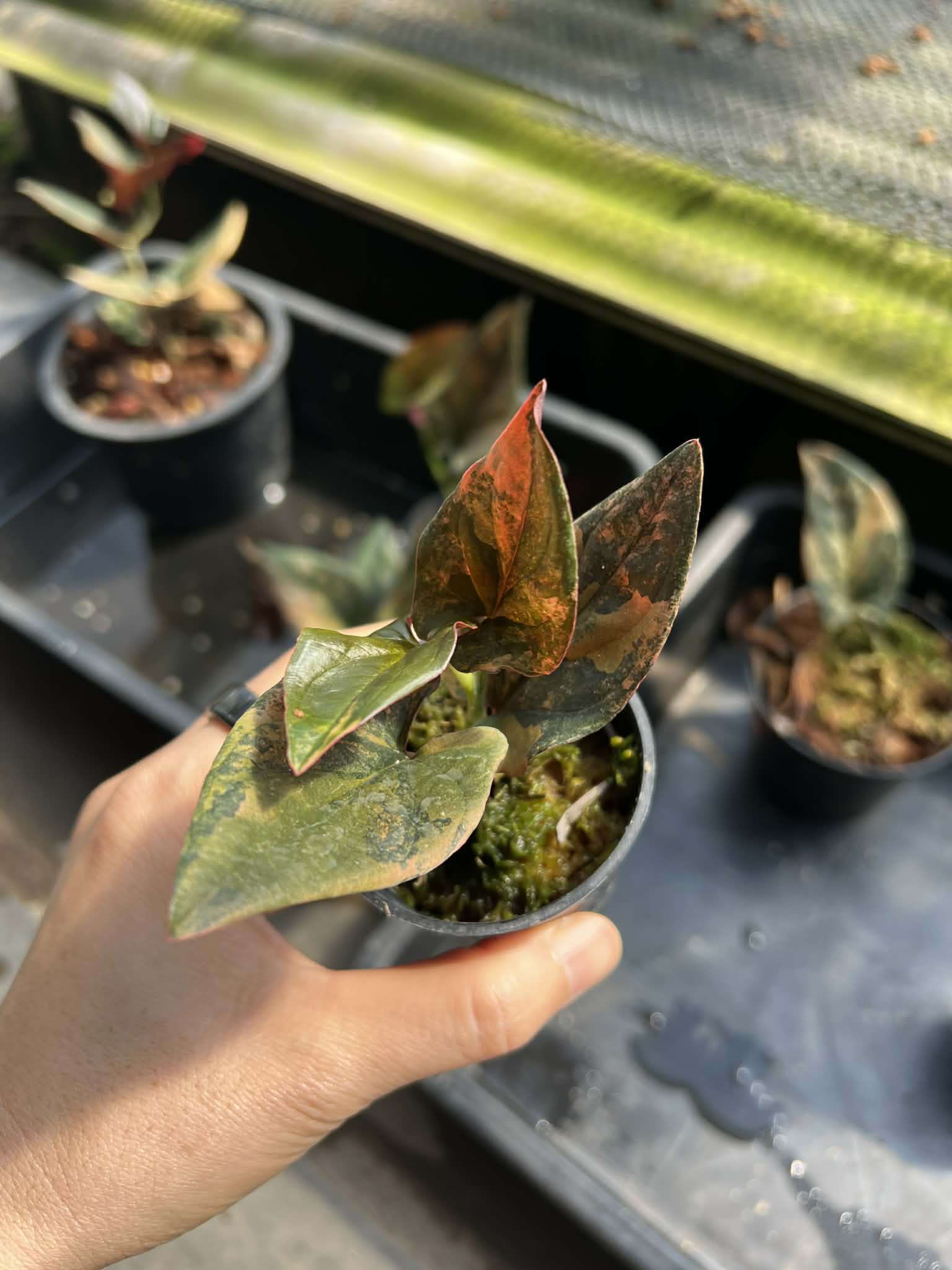 Overall, Syngonium Red Arrow Variegated has a balanced beauty—bold yet gentle, colorful yet elegant—perfect for collectors who appreciate rare variegation and sophisticated foliage.